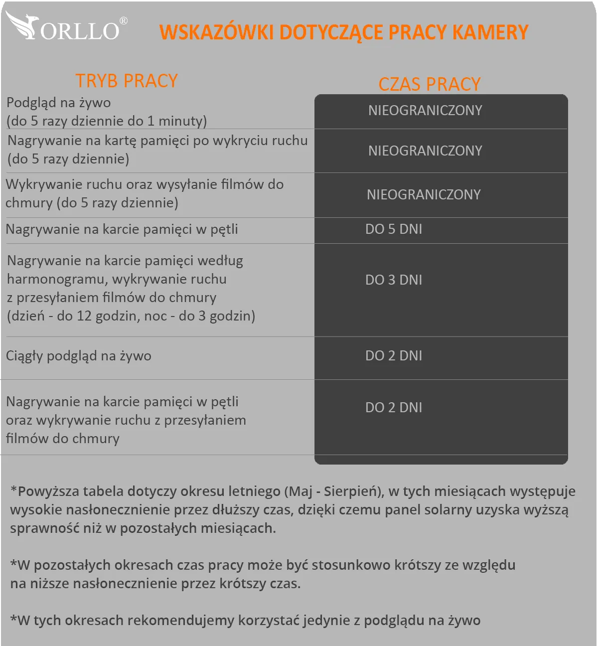 Czas Pracy Kamery ORLLO CAMSIM-2S