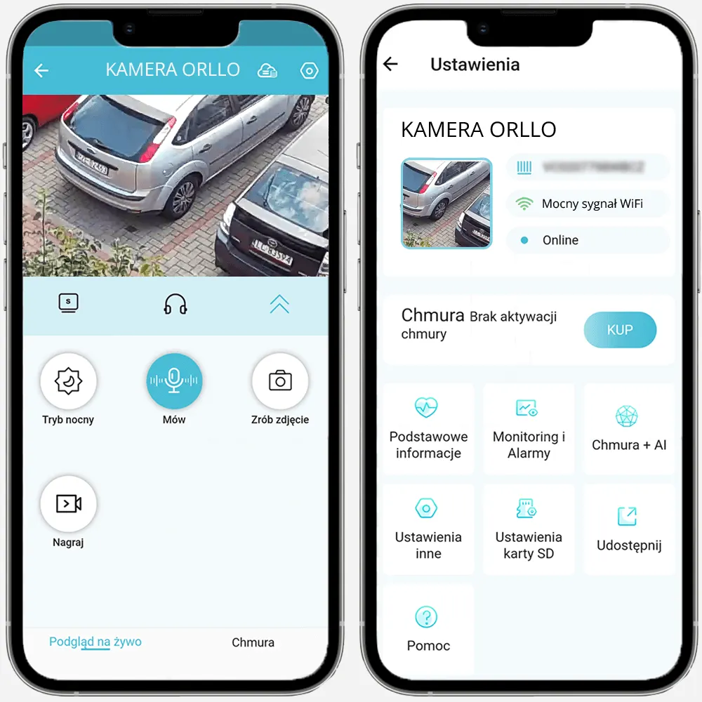 - Kamera musi być dodana do konta i chmura musi zostać aktywowana przez QR kod, w innym przypadku wideo nie będzie nagrywane