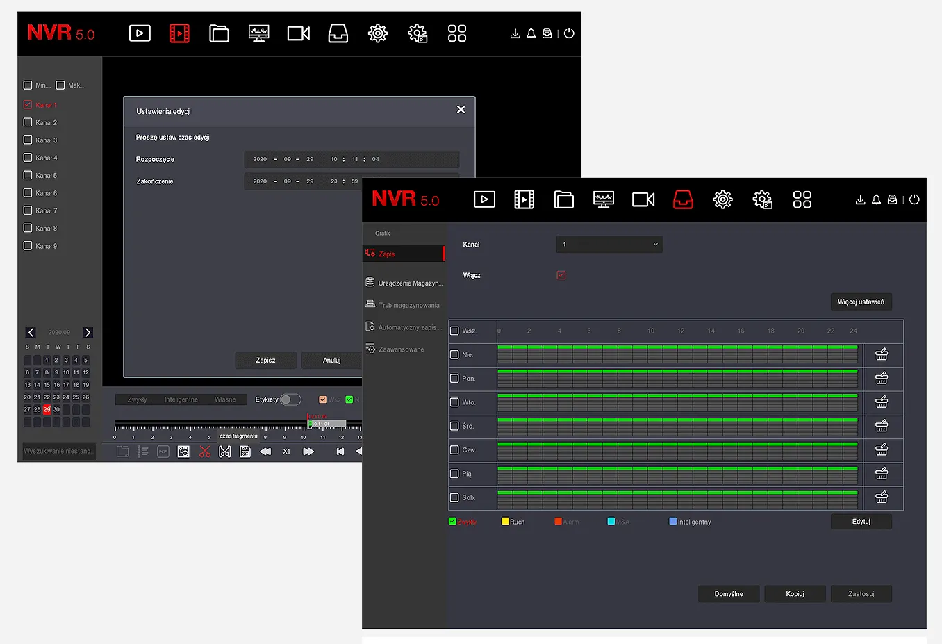 Funkcje nagrywarki NVR